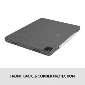 Una cubierta duradera y ajustada protege la parte delantera, trasera y las esquinas de tu iPad Pro, sujetándolo de forma segura en su lugar sin importar lo que estés haciendo.