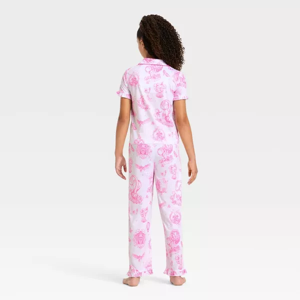 Disfruta de la comodidad durante toda la noche con este conjunto de pijama de dos piezas de manga corta de la colaboración entre Wicked y Katie Kime. Confeccionado en jersey color leche para mayor comodidad, este conjunto es perfecto para dormir o acurrucarte en el sofá para ver una película. La camiseta de manga corta y los pantalones presentan diseños inspirados en Wicked.