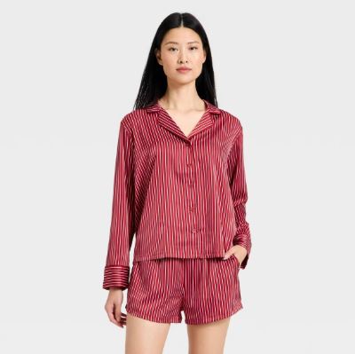 Conjunto de pijama de satín para dama: camisa de manga larga y short, talla M – Marca Auden