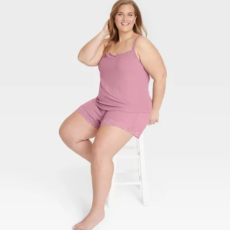 Conjunto de pijama de dos piezas talla 2X, en color rosa. Incluye top con tirantes finos y short con cintura ajustable. Suave, cómodo e ideal para descansar en casa.