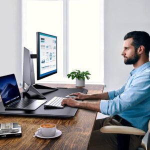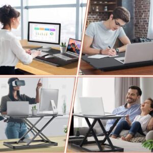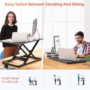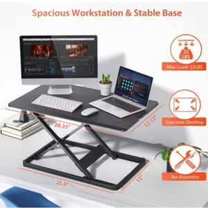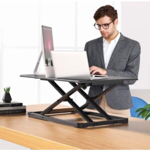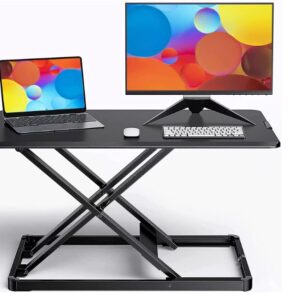 - La superficie del convertidor de pie mide 28.3 x 17.3 pulgadas. Este escritorio de pie es lo suficientemente grande para tu laptop y un segundo monitor, teclado, teléfono, auriculares, taza de café, etc. Un escritorio ajustable para computadora que satisface tus necesidades diarias en el trabajo o el estudio como elevador de monitor y escritorio de computadora de pie. Bajar y sentarse en una mesa. El convertidor se volverá delgado, lo que no obstaculizará tu escritura.