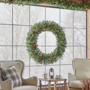 Corona navideña preiluminada de 48 pulgadas Woodmoore – Home Accents