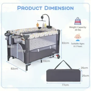 de viaje, cuna mecedora, cambiador, cuna colecho, corralito y centro de actividades para bebés, garantizando la comodidad y el entretenimiento de tu pequeño en cada etapa de su crecimiento. Edad recomendada: 0-3 años.