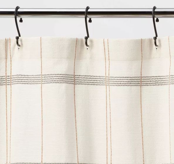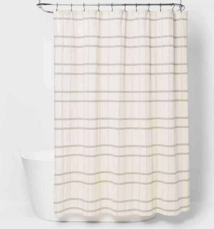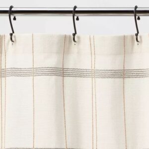 Te encantará el aspecto contemporáneo que esta moderna cortina de ducha tejida a cuadros de Threshold™ le da espacio a tu baño. Con un patrón de cuadros en negro tejido sobre un fondo marfil, esta cortina de ducha aporta un toque moderno a la decoración de su baño, mientras se combina sin esfuerzo con una variedad de estilos de decoración y combinaciones de colores. Confeccionada en 100 % algodón, esta cortina de ducha decorativa cuenta con un ojal en la parte superior para una fácil instalación y mayor comodidad.