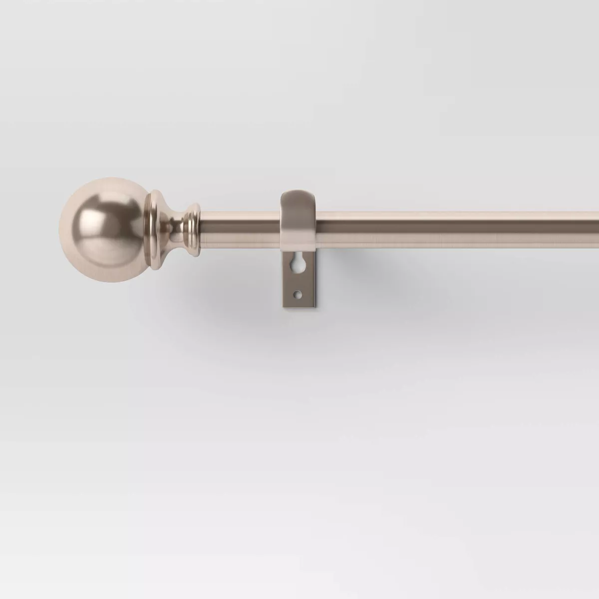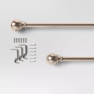 Crea fácilmente un look de capas en cualquiera de las ventanas de tu hogar con esta elegante y funcional barra de cortina de doble bola de Threshold™. Fabricada con metal resistente para mayor durabilidad y estabilidad, esta barra doble presenta grandes detalles de bolas con detalles curvos en los extremos de la barra frontal y detalles curvos a juego en la barra trasera para una apariencia cohesiva. Con una gama de tamaños y acabados para elegir que se adaptan perfectamente a tus necesidades de decoración, esta barra doble de metal es una manera fácil de renovar cualquier habitación.