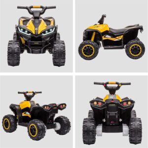 Ruedas potentes: este ATV para niños cuenta con ruedas resistentes al desgaste para una conducción suave con la fuerza robusta para manejar múltiples tipos de suelo y hacer que los golpes sean más cómodos. El vehículo de 4 ruedas para niños pequeños está hecho con material grueso y un marco de acero para mantener el equilibrio y la seguridad.