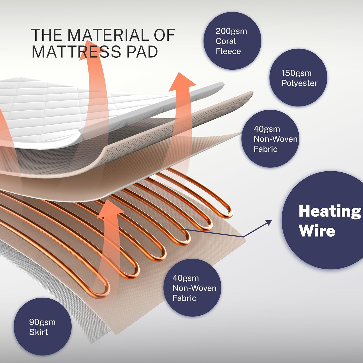 【Diseño de tela lujosa de 3 capas】: Elaborado con una estructura acolchada de diamante de primera calidad, este cojín combina forro polar de coral de 200GSM + poliéster de 150GSM + capas dobles de tela no tejida de 40GSM + tela de falda de 90GSM. El diseño transpirable de bolsillo profundo de 15 pulgadas garantiza un ajuste fresco, seco y cómodo para colchones de hasta 15 pulgadas de grosor.