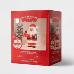 Dé la bienvenida a Santa a su hogar con la novedosa lámpara escultórica Tinsel Santa con caras intercambiables de Wondershop™. Esta novedosa escultura de Papá Noel viene con una bolsa de regalos y decorada con oropel para darle un aspecto festivo. Está diseñado con cuatro caras intercambiables para ayudarte a personalizar el aspecto. Diseñada para uso en interiores y exteriores, esta novedosa escultura de Papá Noel en oropel cuenta con bombillas incandescentes que se iluminan con un efecto constante para ayudar a crear un espacio hermoso y resplandeciente.