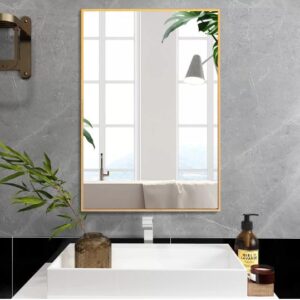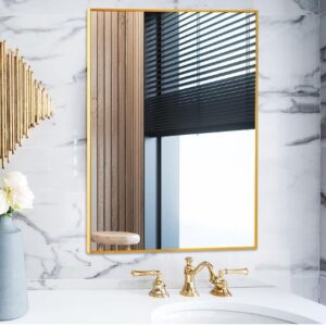 Espejo de baño de pared de 24″ x 36″ rectangular, dorado – Koonmi