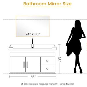- Reproducción de color verdadero: el espejo de baño de 24 «x36» es una opción moderna y de moda, la superficie del espejo está hecha de vidrio flotado de grado especial, por lo que la lente es transparente sin aberración cromática, transmisión de luz cómoda para brindarle imágenes de alta definición real, restaurando la verdadera belleza