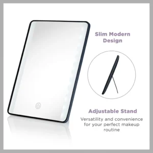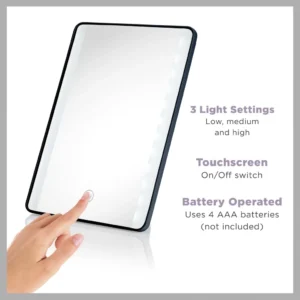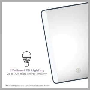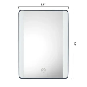 Entorno elegante: este espejo rectangular de 8,9″ x 6,5″ presenta un acabado azul marino brillante que complementa cualquier decoración. El botón de encendido y apagado de la pantalla táctil ubicado en la parte frontal del espejo cuenta con 3 configuraciones de luz: baja, media y alta.