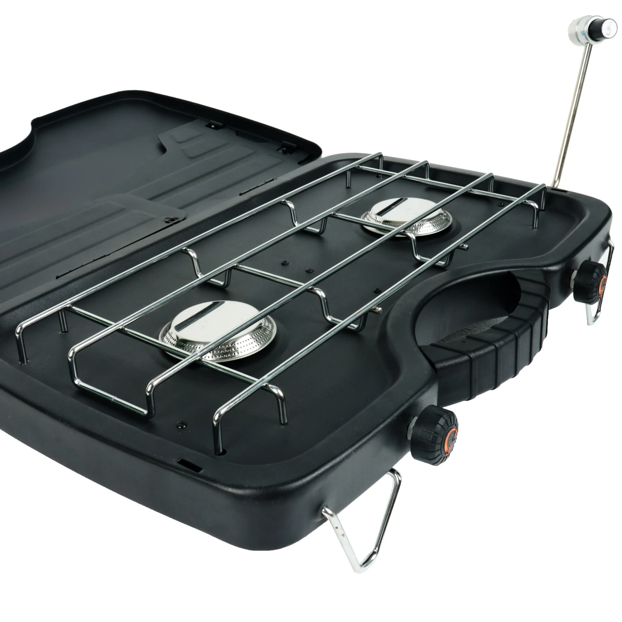 Estufa de campamento versátil equipada con dos quemadores de acero inoxidable BTU 10,000 (3.15 «unidad)