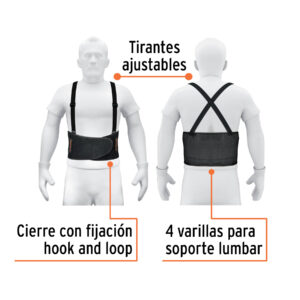 Bandas elásticas y 4 varillas para soporte lumbar que brinda un mejor ajuste