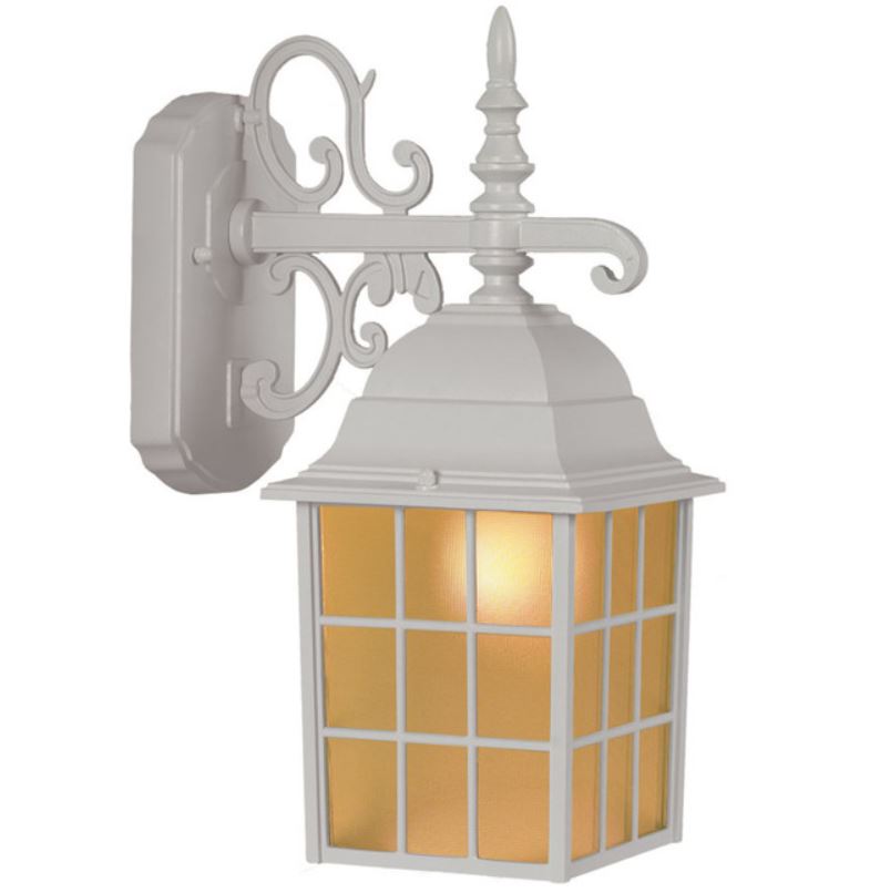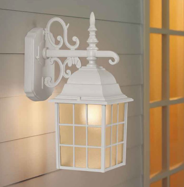 Este aplique de pared de aluminio fundido a presión blanco con vidrio esmerilado es resistente a la intemperie y robusto. Este diseño de linterna ofrece un aspecto tradicional ideal para la iluminación de entradas. Requiere una bombilla incandescente de 100 vatios (no incluida). Además, el hardware incluido para una fácil configuración.