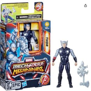 Marvel Mecasaurios de ataque mecánico, figura de acción de Thor de 4 pulgadas con accesorio de arma de dinosaurio, juguetes de superhéroes para niños a partir de 4 años