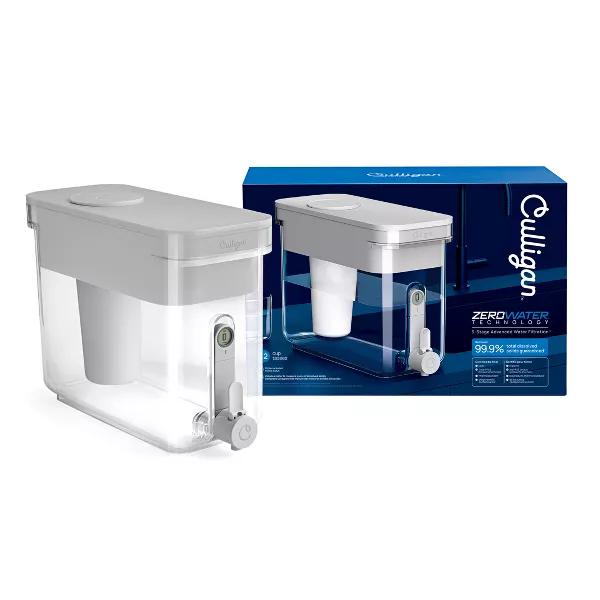 Disfrute de agua potable más limpia y con mejor sabor con tranquilidad, siempre. Una hidratación confiable en su hogar comienza con el dispensador de agua con filtro Culligan con tecnología ZeroWater de 32 tazas, equipado con un filtro premium que proporciona filtración avanzada de agua de 5 etapas™. Esta potente tecnología de filtración Culligan con ZeroWater elimina el 99.9% de los sólidos disueltos de su agua, garantizado.