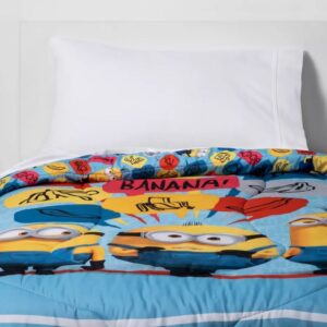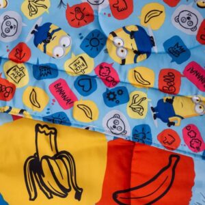 Los Minions siempre son mejores juntos, y su mantra Unidos estamos unidos es un gran mensaje para llevar a la vida de sus hijos. ¡Este edredón reversible es perfecto de adelante hacia atrás! El frente muestra a los Minions pensando en su cosa favorita… ¡PLÁTANOS! El reverso es una alternativa divertida y caótica, ideal para satisfacer a tu pequeño en cualquier estado de ánimo.