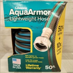 - La manguera liviana Gilmour® AquaArmor ™ es 50% más liviana que las mangueras estándar y dura hasta 10 veces más que las mangueras expandibles