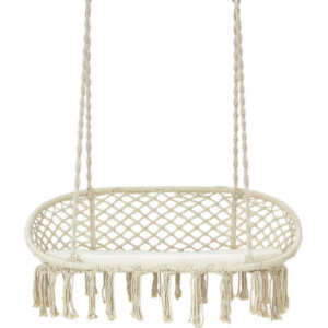 ● Fácil de montar: Gracias a su completo armazón, la hamaca columpio está lista para usar. Puedes colgarla del techo, de una rama de árbol, de un soporte para hamacas en forma de C o de cualquier saliente resistente. Además, puedes colgar dos aros metálicos por separado en una viga o juntos en un gancho, según prefieras.