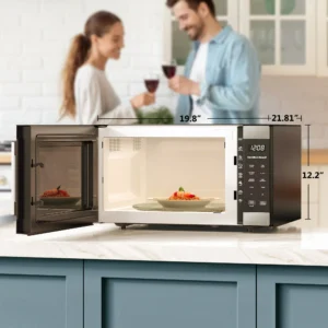Este horno microondas de encimera cuenta con siete opciones de cocción por sensor preestablecidas, un botón táctil de 30 segundos, reloj y temporizador con pantalla LED digital fácil de leer y un gran plato giratorio de vidrio de 12,4 pulgadas que puede acomodar una variedad de platos.