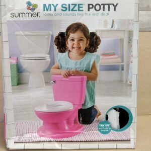 Emocione a su pequeño con el Summer Infant My Size Potty Princess (rosa). Presenta la apariencia de un inodoro para adultos para ayudar a garantizar una transición cómoda y segura a lo real. Este orinal para bebés también tiene sonidos realistas de rubor y un compartimento de limpieza incorporado para promover hábitos saludables. Este producto está diseñado para ser fácil de limpiar e incluye un tazón extraíble y un protector contra salpicaduras con clip para niños.