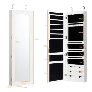 Alta calidad y seguridad: Armario para joyas está hecho de MDF de alta calidad con recubrimiento de polvo,es resistente a la humedad, resistente al desgaste y extremadamente duradero. Además, el forro suave protege sus joyas del desgaste y los rasguños.Equipado con una cerradura de puerta para proporcionar seguridad adicional de sus joyas si es necesario.