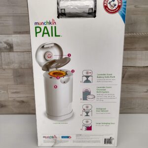 El cubo para pañales Arm & Hammer de Munchkin combina el mejor control de olores en su clase con una estética moderna y elegante que se verá genial en cualquier vivero. Munchkin’s Diaper Pail se basa en el poder probado por el tiempo del bicarbonato de sodio con aroma a lavanda, que absorbe el temido olor a pañal sucio.