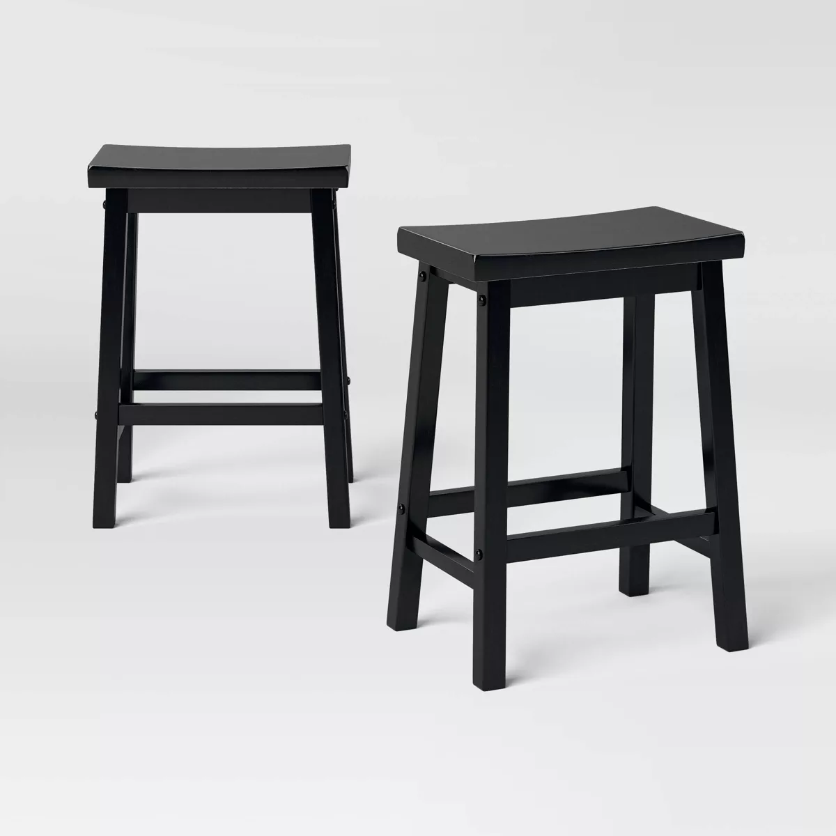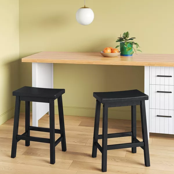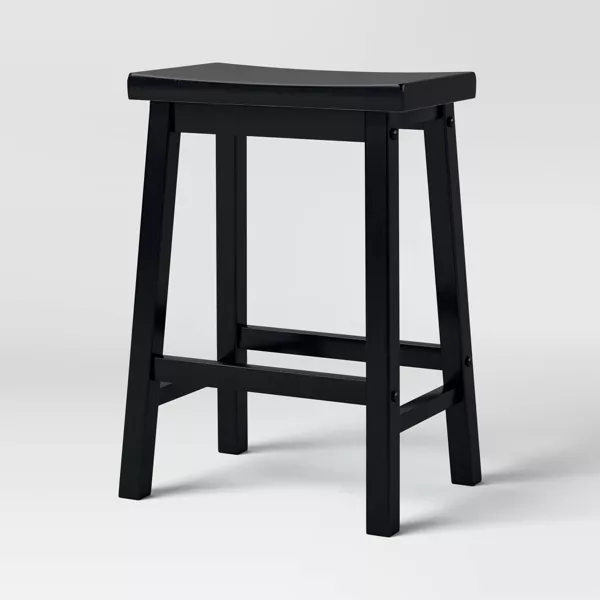 Crea espacio adicional para sentarte en tu cocina o bar con este paquete de 2 taburetes altos de madera maciza con forma de silla de montar de Room Essentials™. Con una estructura de madera, estos taburetes de bar de cuatro patas cuentan con un asiento curvo para mayor comodidad. Tienen forma rectangular e incluyen pedales con barra transversal para apoyar los pies. Combínalos con tu mobiliario favorito para disfrutar de tu café de la mañana o un cóctel por la noche con estilo.