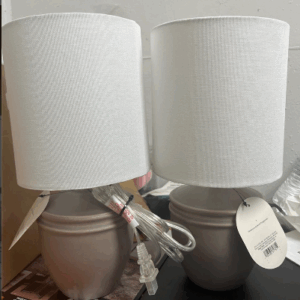 Lámparas de mesa de cerámica gris – Threshold: Pantalla moderna de poliéster, interruptor unidireccional, casquillo E26 no incluye focos