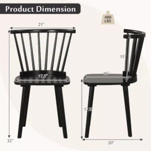 Construcción robusta de madera: Fabricado con madera de caucho, el juego de sillas Windsor irradia durabilidad y resistencia. La dureza superior de la madera hace que las sillas de comedor sean menos propensas a agrietarse o deformarse, lo que garantiza un uso duradero y una capacidad de peso de hasta 181 kg.