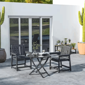 Sillas de porche con listones: Fabricadas con un asiento y respaldo de listones transpirables, nuestras sillas de patio de HDPE se drenan fácilmente después de la lluvia y permiten la entrada de una brisa fresca durante el caluroso verano.