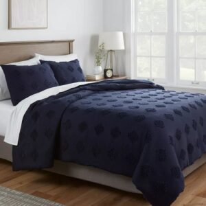 Renueve su retiro de descanso y, al mismo tiempo, agregue un maravilloso punto focal a la habitación con el juego de funda nórdica y funda de almohada arrugadas con diamantes de Threshold™. La elegante funda nórdica tiene un acabado en un tono sólido con una textura arrugada y está decorada con motivos de diamantes en forma de mechones complementarios para una apariencia llamativa. Las fundas de almohada a juego incluidas completan la parte superior de tu cama con una elegancia cohesiva. Este juego de cama cuenta con una construcción de tela para todo el año para un uso cómodo. Tiene cierres de botones y cordones en la funda nórdica, y un cierre tipo sobre de seis pulgadas en las fundas para asegurar cómodamente los insertos y al mismo tiempo permitir una fácil extracción.