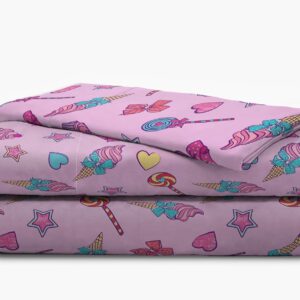 AJUSTE PERFECTO Y DISEÑO DIVERTIDO: este juego de cama Jojo Siwa incluye (1) edredón doble de 64 pulgadas x 86 pulgadas, (1) sábana ajustable de 39 pulgadas x 75 pulgadas, (1) sábana encimera de 66 pulgadas x 96 pulgadas y (1) funda de almohada estándar de 20 pulgadas x 30 pulgadas. Agrega un toque de encanto decorativo a tu habitación con nuestro moderno y súper suave juego de cama Jojo Siwa de Nickelodeon.