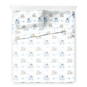 El juego incluye una funda de edredón, una farsa, una funda de almohada, una equipada y una sábana plana con juego de gemelos, y dos farsantes y dos fundas de almohada con un juego standard.