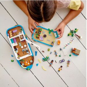 - Un montón de papeles para jugar: este barco de juguete viene con 4 minipersonajes de juguete, incluido LEGO Friends Mia, un animal de juguete, una bicicleta y un puesto de mercado separado para despertar horas de juego imaginativo.
