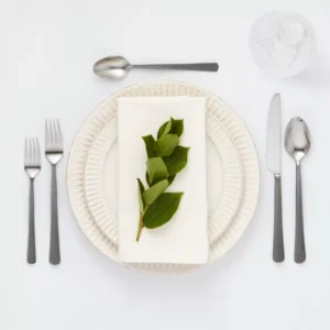 Incluye 4 de cada uno: tenedores, tenedores de ensalada, cuchillos, cucharas y cucharillas.