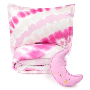Ilumina tu habitación con este Justice Tie Dye Galaxy Reversible Juego de 3 Piezas Twin/Full Comforter con Almohada Decorativa, Microfibra, Set Rosa! ¡Este conjunto incluye un edredón reversible doble / completo, una farsa estándar, una almohada decorativa y un bolso reutilizable extra! Hecho de microfibra 100%, este edredón y farsa es lavable a máquina para un cuidado fácil y conveniente. Este edredón y conjunto falso es todo lo que necesita para alegrar y elevar su ropa de cama.