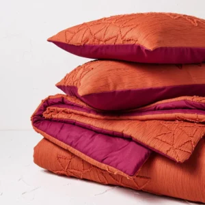 Juego de edredón y funda de almohada en tonos naranja óxido y fucsia