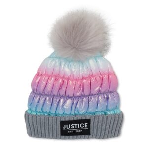 Manténgase con estilo y manténgase caliente esta temporada de invierno con su nuevo gorro y guantes de puffer acolchados Justice Girls, juego de 2 piezas. El gorro cuenta con un parche con logo y pompón de piel sintética emparejado con un par de guantes a juego con dos dedos con capacidad de pantalla táctil para que pueda usar su teléfono con facilidad.