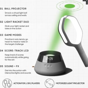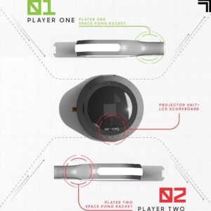 - MECÁNICA DEL JUEGO: El set de pong virtual utiliza tecnología de infrarrojos. Hay opciones para 1 y 2 jugadores y 3 niveles de dificultad para elegir. Alterna entre estas opciones usando los botones en la base. Para golpear la pelota, pasa la raqueta por el haz de luz que emite la base. Asegúrese de que el emisor de infrarrojos de la raqueta esté orientado hacia la pelota virtual durante el juego. Se incluye información más detallada en el manual de instrucciones.