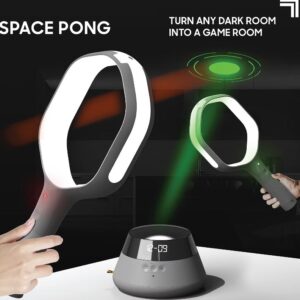 Convierte cualquier habitación oscura en una sala de juegos con Sharper Image Space Pong. Practica solo, enfréntate cara a cara o acepta el desafío objetivo. La pantalla LCD de seguimiento de puntuación realiza un seguimiento de las puntuaciones automáticamente mientras busca la victoria. Entra en acción con luces y sonido interactivos. Perfecto para 1 o 2 jugadores.