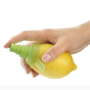 Dale vida a tus ensaladas o añade un toque de frescura a tus cócteles con este juego de 2 pulverizadores de cítricos de Lekue. Estos maravillosos artilugios convierten casi cualquier fruta cítrica en una botella de spray de jugo fresco. Simplemente corte el extremo de la fruta, gire el rociador y rocíe al contenido de su corazón. Fabricados con plástico ABS duradero y silicona, son fáciles de usar y aptos para lavavajillas para una fácil limpieza. El juego incluye 2 rociadores y una base para sostener su rociador de frutas cuando no esté en uso. El rociador más grande está diseñado para usar con limones, naranjas y pomelos, mientras que el más pequeño es perfecto para usar con limas y mandarinas.