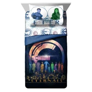 Transforma tu espacio en algo increíble con este juego de camas gemelas Marvel Eternals Space Force. Este colorido juego de cama de 5 piezas es súper suave y el relleno perfecto para mantener el calor durante todo el año. Las costuras de edredón se mantienen en su lugar y agregan un toque decorativo. El relleno de poliéster duradero es suave, cómodo y cálido y mantiene su forma después de varios lavados. El diseño le permite cambiar instantáneamente el aspecto simplemente volteando el edredón. El juego de cama incluye edredón doble, sábana ajustada, sábana plana, una funda de almohada estándar de 20 x 30 pulgadas y una farsa de 20 x 26 pulgadas. Las instrucciones de cuidado fácil incluyen lavado a máquina en frío y secadora baja.