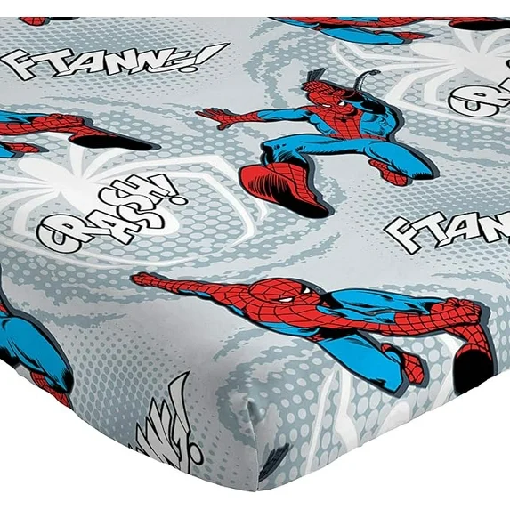 Protege la ciudad de Nueva York con tu superhéroe favorito. Transforma el dormitorio de cualquier niño con un juego de sábanas de microfibra súper suave ‘Jump Kick’ de Marvel Spiderman. Este juego de sábanas súper divertido hará sonreír a cualquier niño. Cada juego de sábanas twin de microfibra súper suave de 3 piezas incluye una sábana ajustable, una sábana plana y una funda de almohada reversible estándar. Los colores llamativos y el diseño emocionante mejorarán la decoración existente de cualquier dormitorio infantil o de niño pequeño. La sábana ajustable mide 39″ x 75″, la sábana plana mide 66″ x 96″ con una funda de almohada estándar de 20″ x 30″. La ropa de cama decorativa presenta personajes e íconos populares de la película. 100% poliéster. Cuidado fácil, lavar a máquina con agua fría, secar en secadora a baja temperatura. ImportadoEste juego de sábanas es perfecto para cualquier niño que ame a Spiderman. Spiderman está haciendo una pose genial. Con sus colores brillantes y gráficos vívidos, esta sábana seguramente será amada por tu hijo. Este juego de sábanas es fácil de cuidar. Otra colección de ropa de cama de Spiderman está disponible para completar un dormitorio temático de Spiderman.