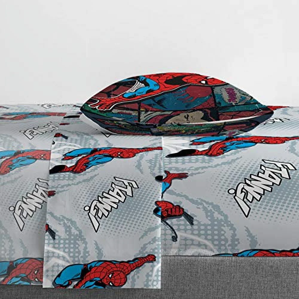 Diseño de superhéroe: Transforma la habitación de cualquier niño con el juego de sábanas de microfibra supersuave «Jump Kick» de Marvel Spiderman, con colores llamativos y diseños emocionantes.