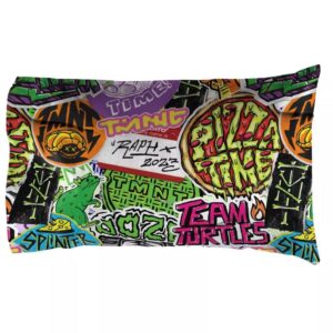 Las Tortugas Ninja no descansarán hasta que la ciudad esté a salvo. Ahora cualquier joven fanático puede estar tranquilo sabiendo que las Tortugas Ninja están para hacerles compañía. Este juego de sábanas dobles es parte de una colección más amplia de ropa de cama TMNT aquí en Target. Este juego incluye una sábana ajustable, una sábana encimera y una funda de almohada. La sábana ajustable mide 75 pulgadas de largo por 39 pulgadas de ancho. La sábana encimera mide 96 pulgadas de largo por 66 pulgadas de ancho. La funda de almohada mide 30 pulgadas de ancho por 20 pulgadas de alto. Este juego se puede lavar a máquina y secar en secadora. Esto es 100% poliéster.