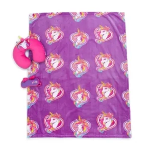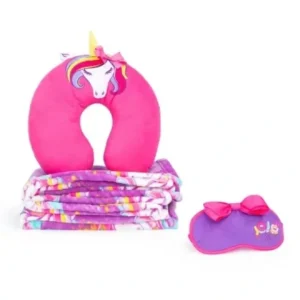 Traiga el último fenómeno con el juego de viaje de 3 piezas Jojo Siwa Unicorn Rainbow. Este juego de viaje de 3 piezas incluye una manta de viaje, un antifaz y una almohada para el cuello, cada uno de los cuales coordina con un diseño de Jojo Siwa. Todos los artículos incluidos en este juego de viaje de 3 piezas están hechos de un material de microfibra súper suave, lo que los hace súper cómodos.