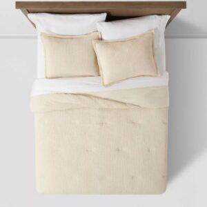Juego edredón de 3 piezas con tejido tipo gofre lavado Tamaño King, Beige- Threshold™