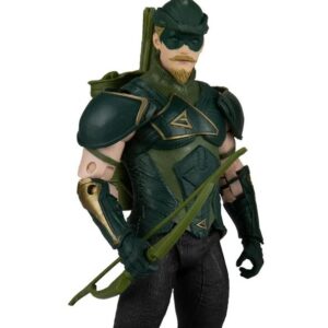 Green Arrow viene con un arco, un carcaj, flechas y una base.