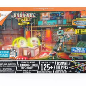 ¡JUNKBOTS Rev’s Hideout de HEXBUG es una experiencia de unboxing legendaria! Esta aventura estilo calendario de adviento está llena de piezas ocultas, cajas y pistas para construir un robot coleccionable. Descubre un JUNKBOT y un compañero Oobit incluidos dentro de Rev’s Hideout. ¡Construye tu JUNKBOT y luego conecta el módulo de motor y el módulo de luz incluidos para darle vida! ¡Un sistema de construcción de tuberías entrelazadas te permite extraer piezas directamente de las paredes del juego para construir y reconstruir divertidos artilugios para tu JUNKBOT!